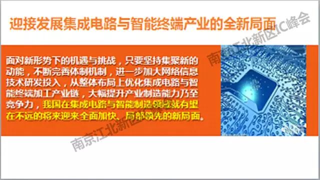 “于集成电路产业来说,作为国民经济和社会发展中具有战略性、基础性和先导性的力量,是改造传统产业培育战略性新兴产业发展信息经济的重要支撑,其发展能力和水平与国家核心竞争力和国家安全息息相关,在网络、信息技术领域中,趋于无可替代的核心地位。7月28号,国务院正式公布了十三五科技创新的规划,规划中集成电路产业被放在非常重要的地位,又给予进一步强调,在科技创新十三五规划中,专门提到要把集成电路及相关技术研究突破作为国家战略目标,将通过集成科技资源、研发具有科技竞争力的重大战略产品,建成一批引领性强的新平台,具有国际竞争力产业化基地,造就一批具有较强国家竞争力的创新型领域企业,在部分领域形成世界领先的高科技产业,争取实现跨越发展。我觉得科技创新这个计划中,确定的方向和定位,实际上也是对于江北新区进一步发展的一个标杆或路标,我们的发展要向着这个方向去具体实施。”