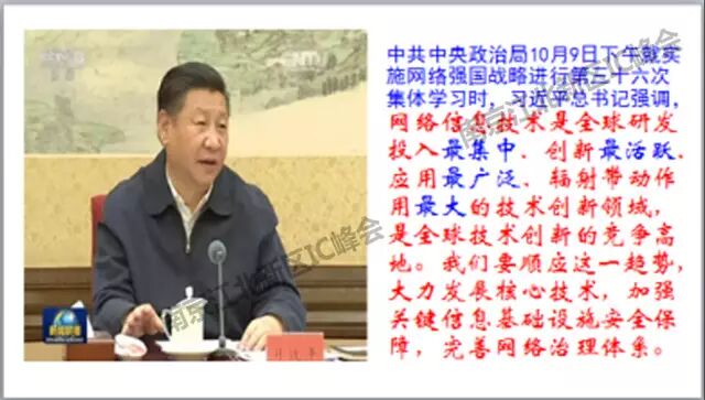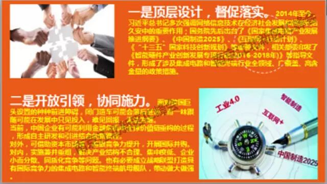 “习总书记在今年的10月9号,中央政治局进行第36次集体学习的时候强调,网络信息技术是全球研发投入最集中、创新最活跃、应用最广泛、辐射带动最大的技术创新领域。总书记用了四个“最”对网络信息技术的定位给予了全新的阐释,总书记还讲到,网络信息技术是全球技术创新的竞争高地,我们要顺应这一趋势,大力发展核心技术,加强关键信息基础设施安全保障,完善治理体系。集成电路和智能终端是网络信息技术领域中最为重要的两个要素,分别位于网络信息产业前端、基础端,应用端,集成电路是各类网络信息技术设备的心脏和中枢,而这个终端设备是网络信息技术得以渗透经济社会各个角落必不可少的载体。”