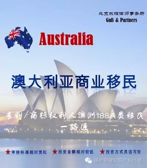 北京故理律师事务所现已开通“权利人澳洲188A类移民一路通”服务。故理律所是北京德崇智捷知识产权代理有限公司下辖律师事务所,多年来专业从事涉外知识产权一站式法律服务及创新移民业务,并且拥有独家的海外优势资源。